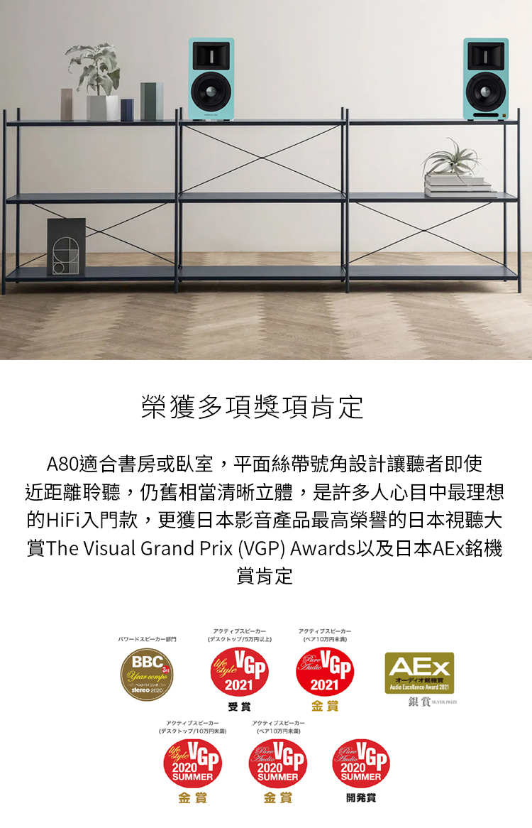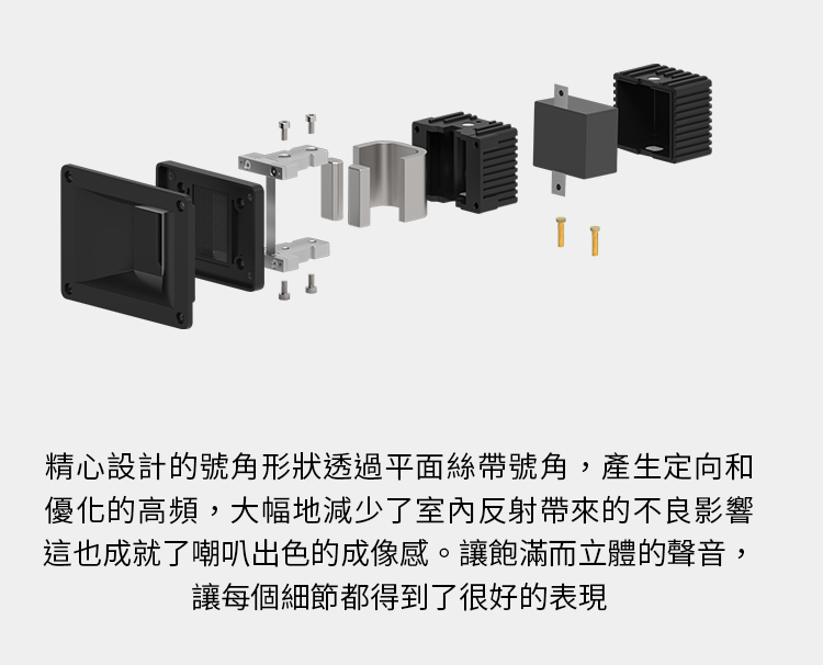 .獨特的號角負載鋁帶高音,4.5吋鋁質振膜