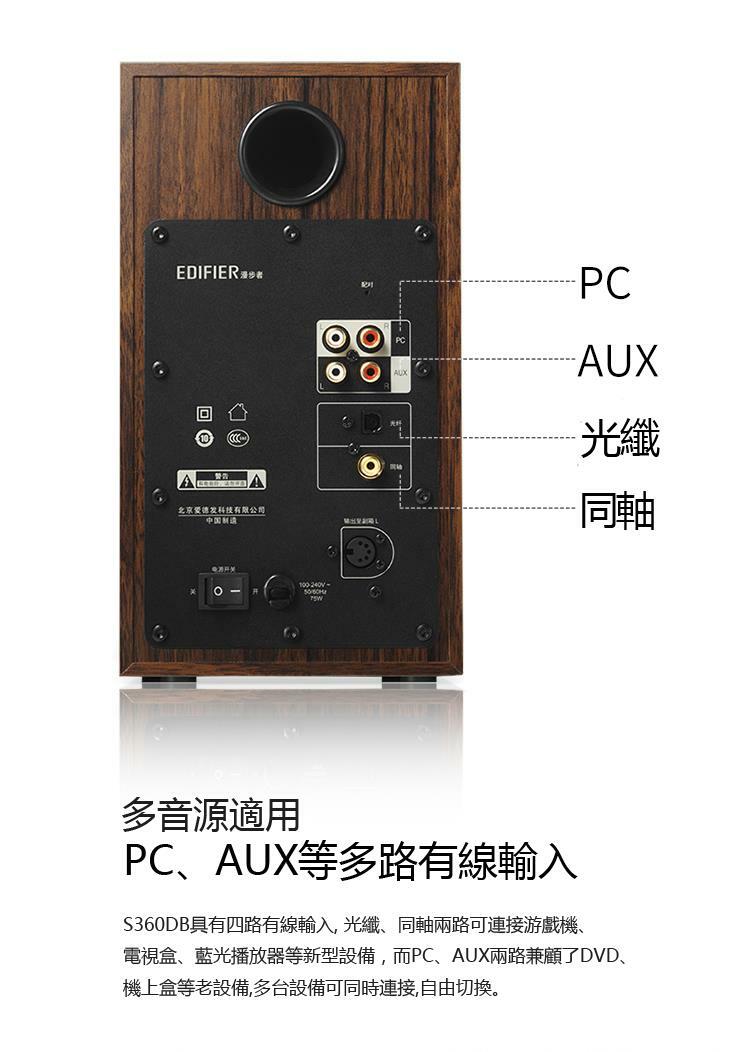 .數位光纖(toshlink)和同軸輸入、PC/AUX雙模擬輸入